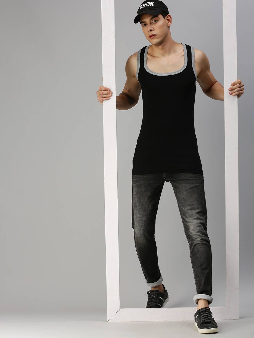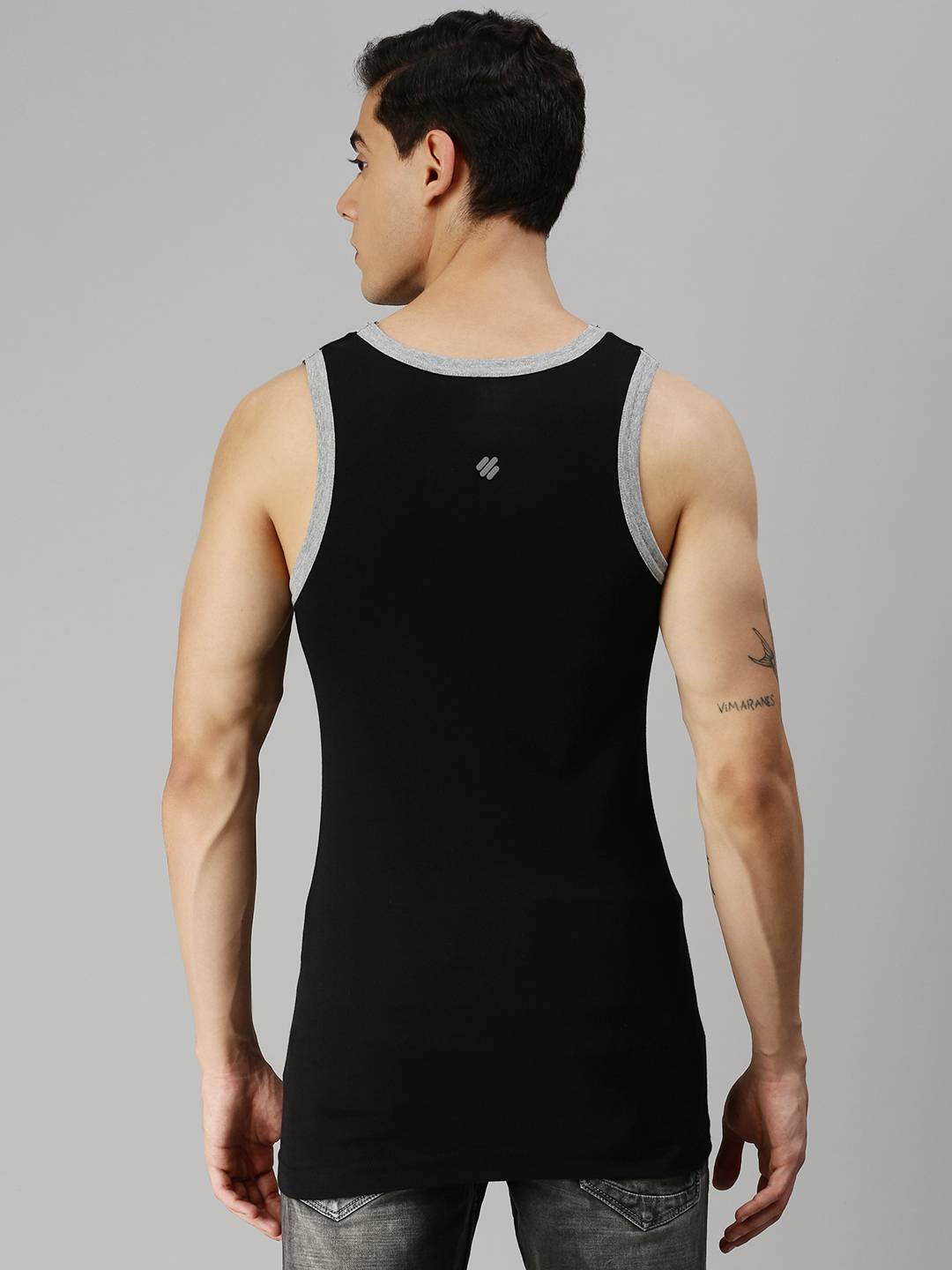 100% premium combed cotton , 1x1 Stretch "Rib" fabric , Contoured armhole for flexibility , Double reinforced shoulder strap seams for durability , Soft stitch international machines